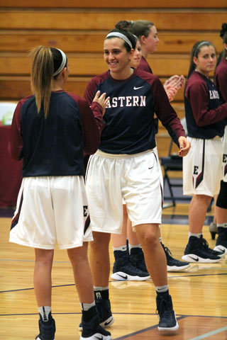 Kelsey Santagata was a a 5-foot-10 first-year transfer sophomore forward who started in 21 of 25 games for Eastern Connecticut State University and averaged 10.6 points, 6.8 rebounds and 26.5 minutes per game. Santagata began her career at ECSU by collecting 12 points, four assists, three rebounds and two steals in just 11 minutes of action while helping lead the Warriors to an 84-40 victory over Fisher College.