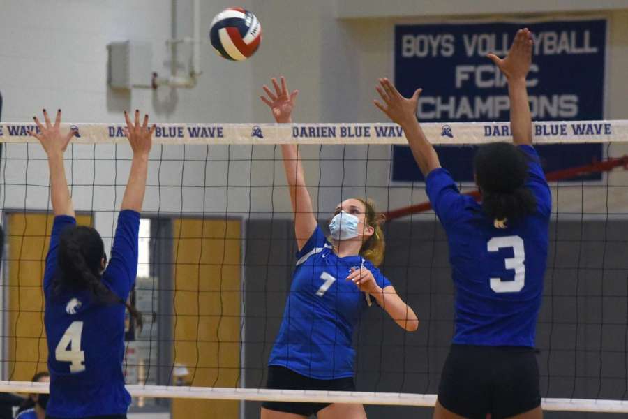 DARIEN — It’s not unusual to see the Darien girls volleyball team celebrating another victory.