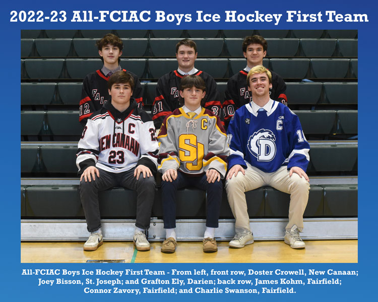 All-FCIAC Boys Ice Hockey First Team and individual photos are available as digital images or as 8×10 glossy prints.