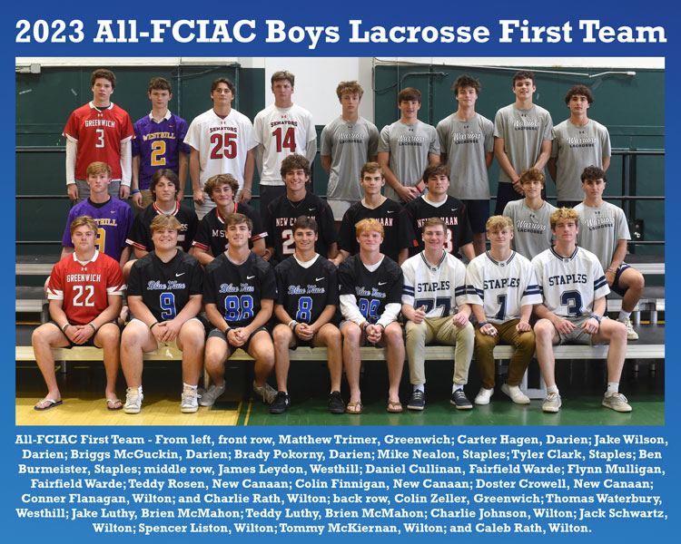 All-FCIAC Boys Lacrosse First Team and individual photos are available as digital images or as 8×10 glossy prints.