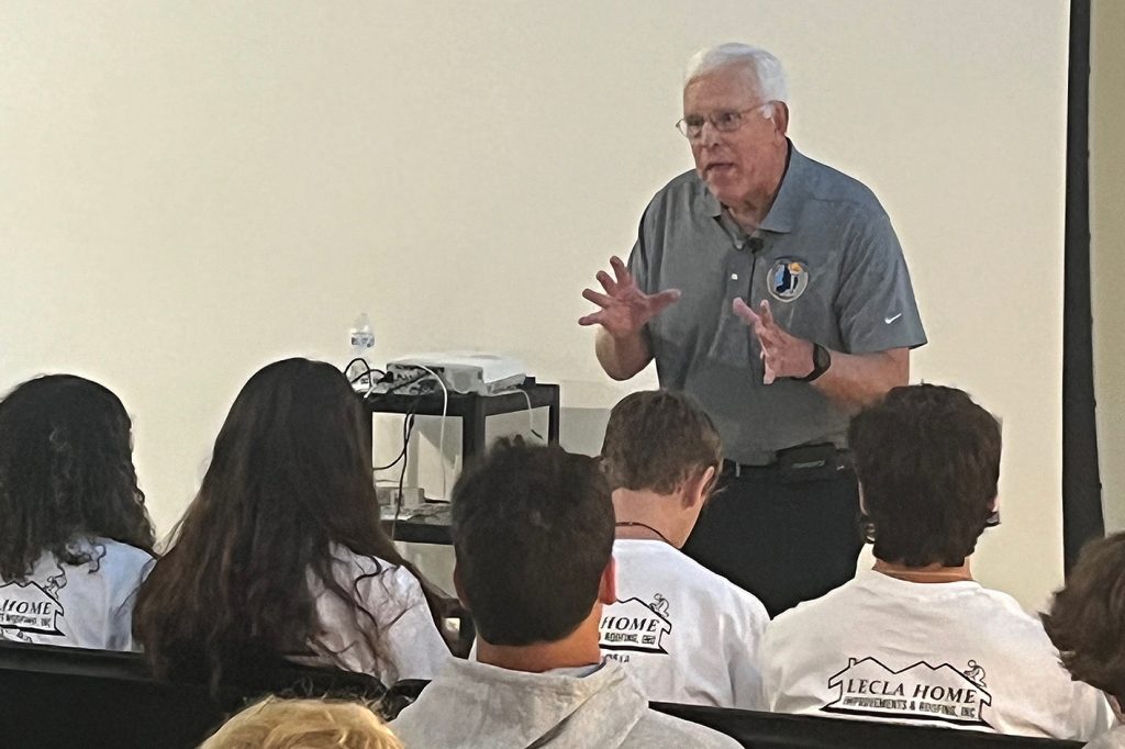 Dr. Daniel Switchenko, former head basketball coach and current professor at Eastern Connecticut State University, gave a presentation on leadership and what it means to be a captain. He then followed up his presentation by giving scenarios for the students in the round table discussion groups to talk about and share ideas.