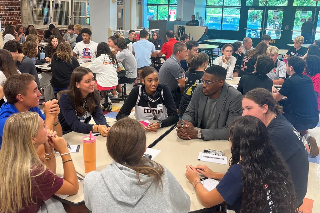 He then led the round table discussions where each table consisted of 8 students from different schools about the issues of social media on high school sports and the students shared ideas on how their social media accounts work and how to keep them positive in nature.