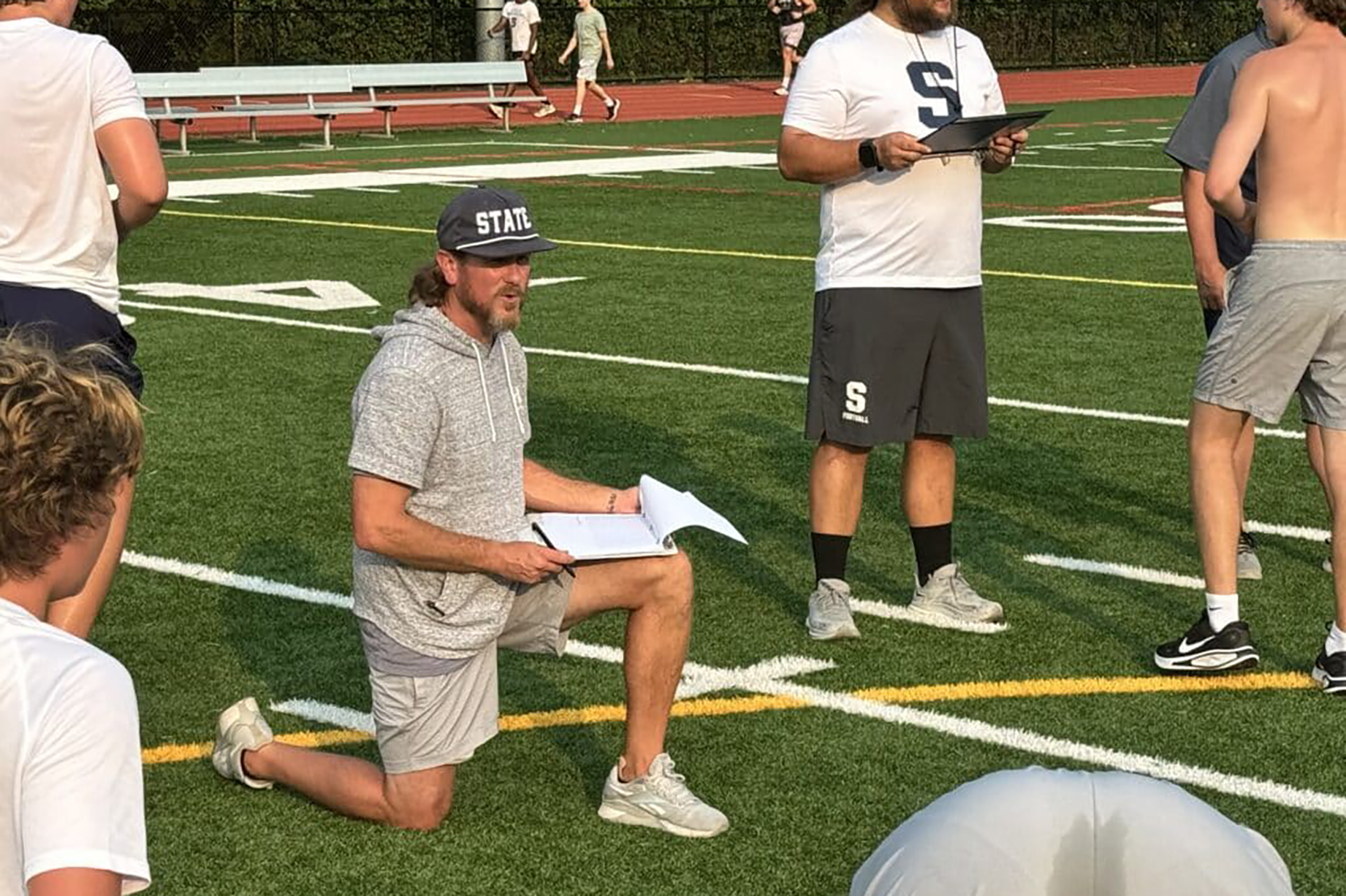 WESTPORT — At the Staples football team’s first OTA last month, coach Adam Behrends wore a hat with the word “state” in all caps on it. Behrends said they were left as talismen on the buses for his staff and the players on the Staples football team before they departed last December for the Class LL championship game against West Haven.