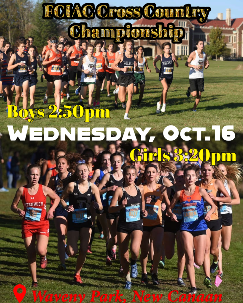 The FCIAC boys and girls cross country championships will be run on Wednesday, Oct. 16, in New Canaan’s Waveny Park and results will be posted on Athletic.net.